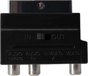 The Maplin SCART to S-Video or Triple RCA Adapter allows an in-line s-video or triple phono (RCA) connection to a SCART socket on a television or DVD Player, switchable to an input or an output.