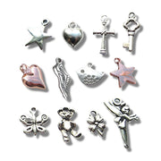 - Charms (Silver Plated): Cross 11mm, Bird 9mm, Butterfly 15mm, Flower 10mm, Fairy 25mm, Key 12mm, Puff Heart 15mm, Running Shoe 25mm, Star 15mm, Teddy 12mm.