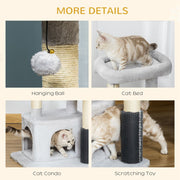 PawHut Cat Tree for Indoor Cats Climbing Tower Kitten Scratch Post Activity Center Kitten with Massage Toy Hanging Ball Bed Condo Perch 48 x 48 x 85cm Grey