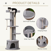 PawHut Cat Tree Kitten Tower w/ Scratching Post Condo Plush Perches Grey