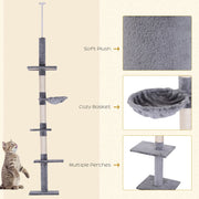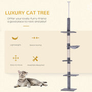Adjustable 5-Tier Cat Tree Scratching Tower - Perfect for Rest, Relaxation, and Play" Description: Create the ultimate space for your kittens and cats to rest, relax, and play with this high-quality cat play tower from PawHut. With its five-tier design that reaches from the floor to the ceiling, this cat tree provides plenty of space for climbing and resting, while also featuring a dedicated cat scratching post to protect your furniture from damage. The core of this tower is made with solid particle board, ensuring durability and stability for your cat's safety. It can be easily secured to the ceiling using the included tension rod, and its height is adjustable from 230cm to 260cm, allowing you to customize the fit to your space. Enhance your feline's environment with this versatile cat tree that offers endless entertainment and comfort. Product Highlights: - Adjustable height from 230cm to 260cm for a perfect fit - Five-tier design provides ample climbing and resting space - Durable construction with solid particle board core - Protects your furniture with a dedicated cat scratching post - Easy to secure to the ceiling with included tension rod