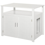 2-in-1 Cat Box Side Table - White, Magnetic Door, Quality Design