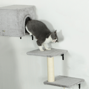PawHut 6-Piece Cat Wall Shelves Set, Cat Wall Furniture with Condo, Grey