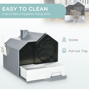 PawHut Hooded Cat Litter Tray - Scoop Drawer, Handle, Deodorant
