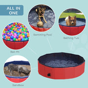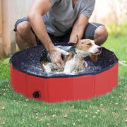 PawHut Foldable Dog Paddling Pool Pet Cat Swimming Pool Indoor/Outdoor Collapsible Summer Bathing Tub Shower Tub Puppy (80w × 20h cm, Red)