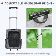 PawHut Pet Travel Backpack Bag Cat Puppy Dog Carrier w/ Trolley and Telescopic Handle Portable Stroller Wheel Luggage Bag (Grey)