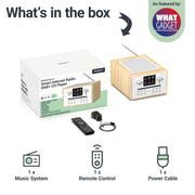 Designed with convenience in mind, it features a vibrant colour LCD screen and preset buttons for quick access to your top stations. The USB port lets you charge your phone as you listen, while the remote control gives you full command from the comfort of your seat. With added features like Aux-in for MP3 players and a dual alarm with snooze, it's not just a music system—it's a complete audio experience tailored to your lifestyle.
