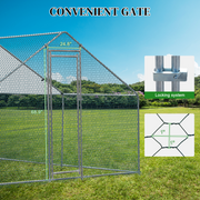 Elevate your backyard farm setup with our expansive 10 x 10 ft Large Metal Chicken Coop. This walk-in poultry cage is designed to provide ample space for your chickens, rabbits, cats, dogs, or other farm animals to roam and play freely. Crafted with meticulous attention to durability and safety, this coop ensures a secure and comfortable environment for your animals. A waterproof cover shields your poultry from adverse weather, while the robust construction guarantees longevity and ease of maintenance. Ideal for outdoor settings, this chicken coop is an essential addition to any backyard farm or garden, offering a blend of functionality, protection, and spaciousness.