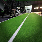 Our selection of laned sprint tracks comes in jet Black, vibrant Green, sleek Grey, bright Red and bold Blue. Representing the pinnacle of durability in gym grass options, this product boasts a high-density composition, low pile height and a non-directional design. Even after years of heavy use, this grass exhibits minimal to no signs of wear and tear.