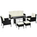 Outsunny Rattan Garden Furniture Sofa Set, 2 Armchairs 2 Footstools Table White