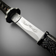 A weapon of both practicality and prestige, the tantō served as a trusted sidearm of the samurai and was also wielded with remarkable skill by the Onna-musha, the warrior women of feudal Japan. This faithful reproduction features a beautifully wrapped faux rayskin handle, ornate menuki (handle embellishments), and a strikingly detailed saya (scabbard).