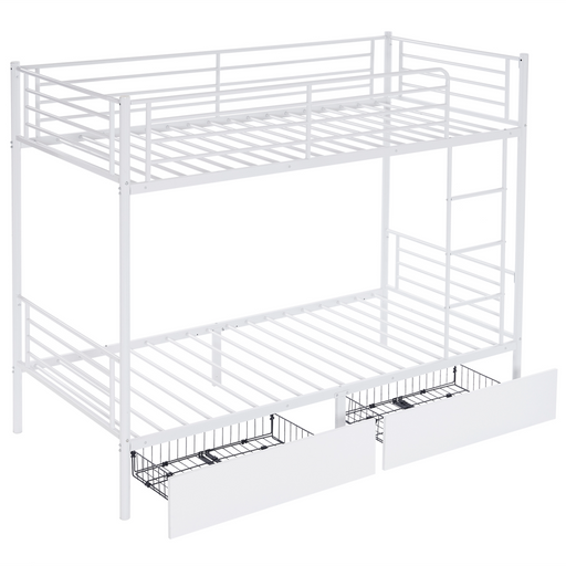 View full detailsTwin Over Twin Bunk Bed with Two Storage Drawers & Full-Length Guard Rail, Heavy Duty Metal Bunk Bed for Kids Teens Adults, White