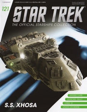 Star Trek: The Official Starships Collection part 121 features the SS Xhosa from the Star Trek: Deep Space Nine episode 'The Way of the Warrior'. This Antares-class freighter was constructed at the Luna Shipyards sometime in the 23rd century. It was still in operation during the 2370s when it operated under the authority of the Petarians, but was commanded by a human female – Captain Kasidy Yates.