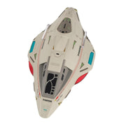 While the crew of the U.S.S. Voyager were stranded in the Delta Quadrant they designed a unique scout vessel that combined Starfleet and Borg technology. In the real world, the Delta Flyer was designed by Rick Sternbach, who gave it a distinctive, aerodynamic shape. This is Eaglemoss's XL version of the ship, which measures 8.5" (22 cm) long. It comes boxed with its magazine.