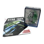 This Eaglemoss model is a meticulously crafted replica of the Valdore-type warbird, measuring approximately 8.5 inches (22 cm) in length. Constructed from die-cast metal and high-quality ABS materials, it captures the ship's elegant avian-inspired design, featuring intricate wing structures and a distinctive green hull. Each model is hand-painted to reflect the vessel's on-screen appearance.