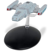 When Seven of Nine was a human child her parents set out to study the Borg on their ship the Raven. The ship crashed after the Borg took an interest in them and assimilated them. Years later, Seven found the Raven after she detected a signal from it. The Raven was designed by Rick Sternbach, who set out to make it look like a larger version of DS9's runabouts. The Eaglemoss model is 4.75" (12 cm) long.