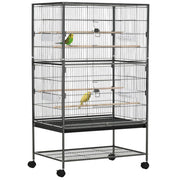 Bird Cage Aviary for Budgies Canaries w/ Rolling Stand Slide-Out Tray, Grey