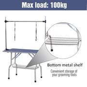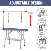 PawHut Metal Adjustable Dog Grooming Table Rubber Top 2 Safety Slings Mesh Blue