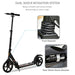 HOMCOM Teens Adult Kick Scooter Fold Adjust 14+ w/ Rear Dual Brake System Black