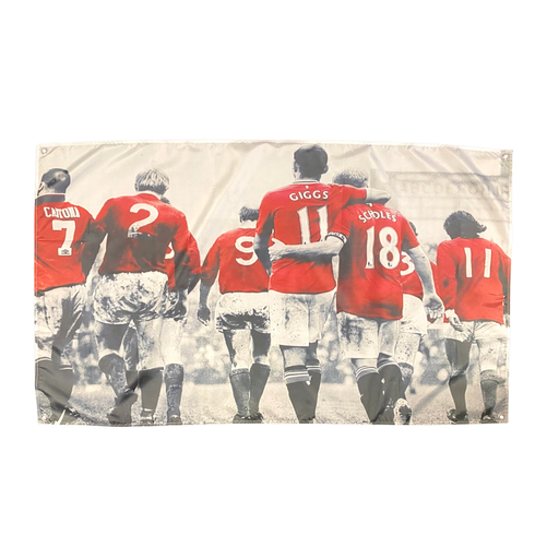 I-MUSTA flag featuring the legends of Manchester United.