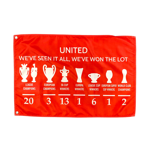 I-MUSTThe Weβve Won The Lot Flag showcases Manchester Unitedβs rich history of success with depictions of the clubβs trophies. Expertly printed on high-q...