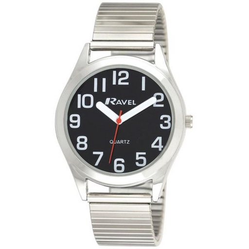 View full detailsRavel Mens Basic Bold Easy Read Expander Bracelet Watch Black/Silver R0225
