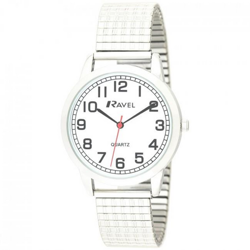 View full detailsRavel Mens Bold Number White Dial Expander Bracelet Watch R0232.11.1