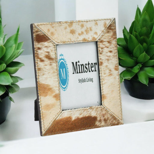 3.5" X 4" TAND AND WHITE COW-HIDE P/FRAME