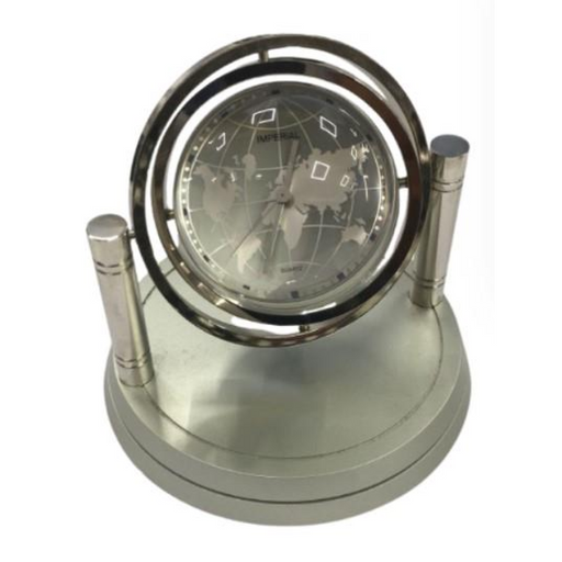 View full detailsMiniature Clock Globe with Display Photo or Logo Silvertone Plated Solid Brass IMP422-AL - CLEARANCE NEEDS RE-BATTERY