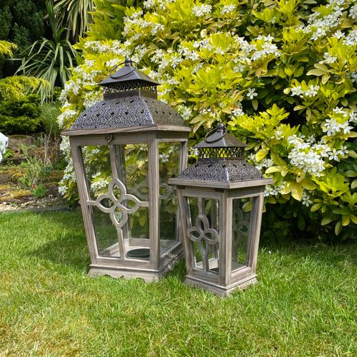 MSLAdd natural warmth and texture to your interiors with this set hurricane garden lanterns, handcrafted from sustainable mango wood, with recycled gl...