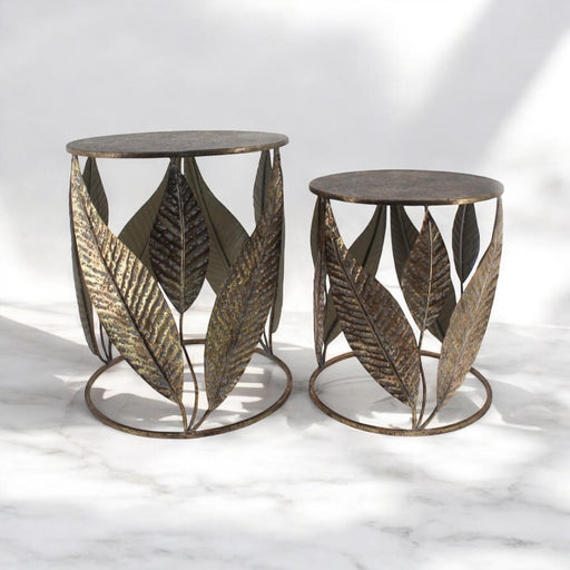 MSLAdd a touch of sophistication to your home decor with these beautifully crafted metal tables, 50X50X61CM43X43X50CM, Leaf Design