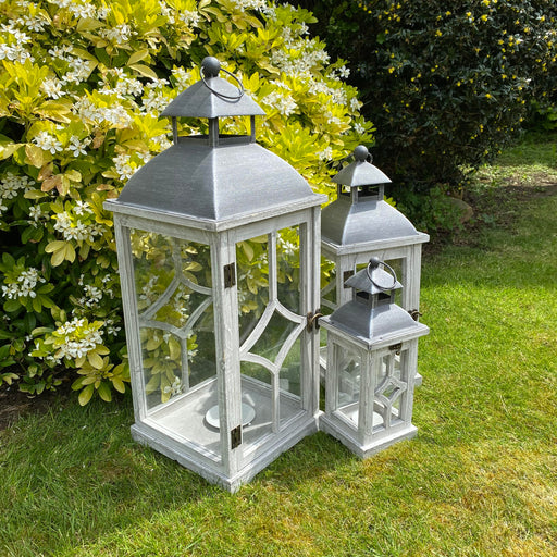 65/45CM GREY SET 2 METAL GARDEN LANTERNS