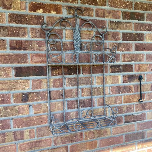 MSL76CM METAL WALL PLANTER A beautiful distressed metal finish gives these unique garden wall shelves an antique look. Hanging hook Distressed ...