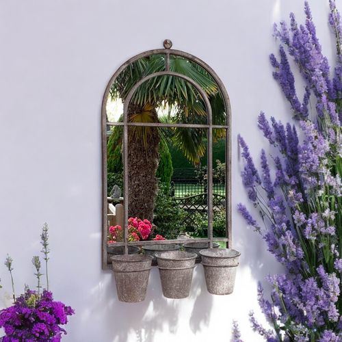 MSLA decorative metal mirror with an antique finish complete with 3 planter holders and pots.