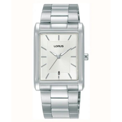 Lorus Mens Basic Fashion Rectangular Date Silver Dial Silver Stainless Steel Bracelet Watch RH937RX9