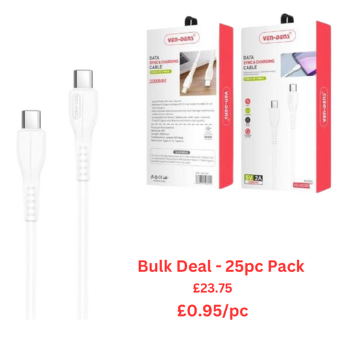 View full detailsVen-Dens Fast Charging Type C to Type C Cable - Bulk Deal 25pc Pack