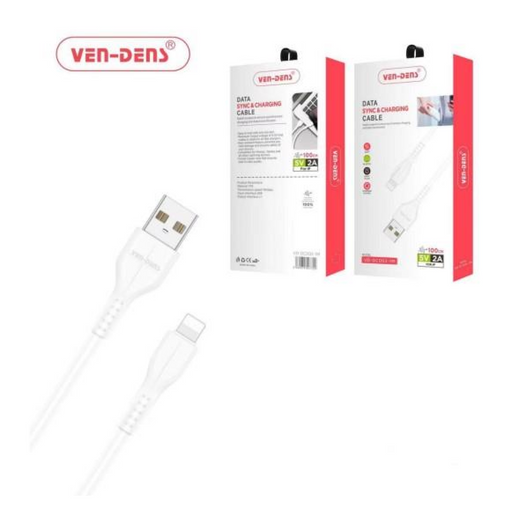 Ven-Dens Data Sync & Fast Charging Cable USB A To Lightning Cable White (1 Metre)