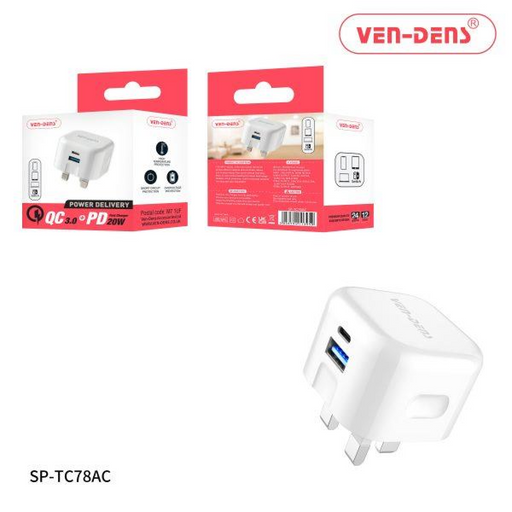 View full detailsVen-Dens Dual Port QC 3.0 + PD 20w Fast Charger Wall Plug