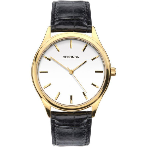 SekondaThis traditional watch from Sekonda offers classic style at great value. Features a round gold-plated case, simple white dial and smart black Arabi...