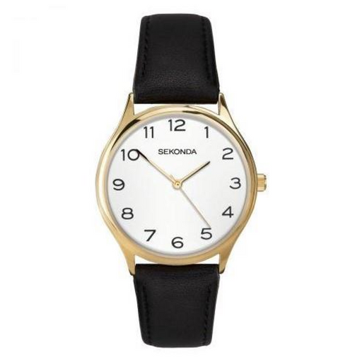SekondaProduct details Sekonda 1854 classic men's easy reader watch has a round polished gold plated metal case and a clear white colour dial. The dial fe...