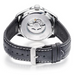 The black dial with gold hands, black leather strap with white stitching and stainless steel case are complemented by the watch’s water resistance up to 100 metres, ensuring durability alongside style. The exhibition case back offers a peek into the intricate automatic workings, inviting admiration for its mechanical prowess.