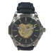 NY London Mens Automatic Dial Analogue Silver/Black Leather Strap Watch