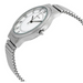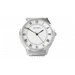 The polished steel watch is smart for those special occasions. The white dial also features Roman numerals adding style to the watch.