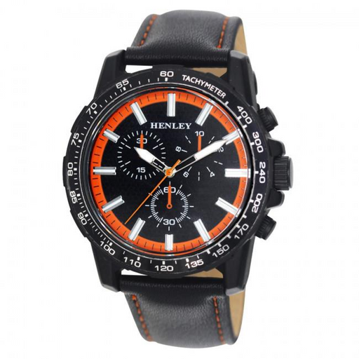 View full detailsHenley Mens Satin Black Sports Coloured Stitch Multi Eye Watch Black/Orange H03015.8