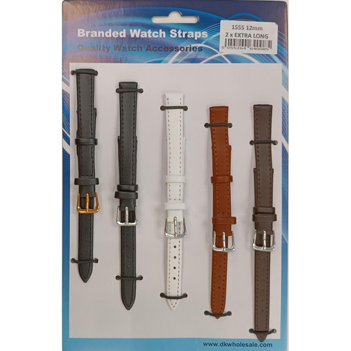 DK1555.05 12MM 2X Extra Long Mix Colour Leather Watch Straps Pack of 5