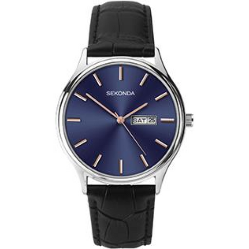 Sekonda Mens Basic Blue face day/date Black Leather Strap Watch 1701