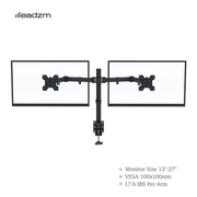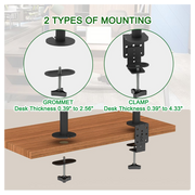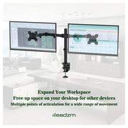 4. The Desk Mount can tilt the screens by 45 degrees from either side, swivel by 90 degrees, and rotate at least 180 degrees.