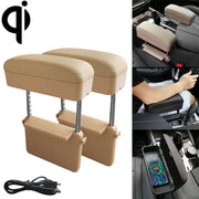 2 PCS Universal Car Wireless Qi Standard Charger PU Leather Wrapped Armrest Box Cushion Car Armrest Box Mat with Storage Box, 2pcs(Beige), 2pcs(Brown), 2pcs(Black Red), 2pcs(Black White), 2pcs(Grey)