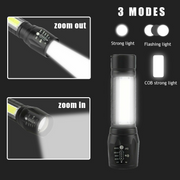 2Pcs Mini Zoomable LED Flashlight USB RechargeableCamping Hiking Flashlight Work light