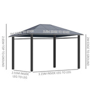 3.6x3(m) Hardtop Gazebo w/ Polycarbonate Curtains - Outsunny